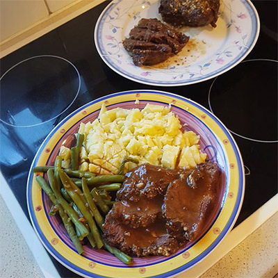 This low effort recipe is ideal for tough/chewy meat like beef and lamb. After a couple of hours, this tough meat will transform into melt in the mouth meat! This recipe is one of my family favorites. The best thing of cooking this recipe is, while the meat is slowly cooking, you can do other house chores, talk about multitasking!!!! Ingredients: 1 kg of beef cheeks ( but you can use beef or lamb steaks) 1 tbsp Onion Powder 1 tbsp Garlic Powder 1 tbsp Paprika...