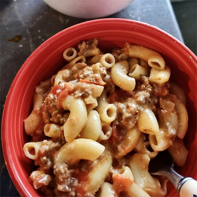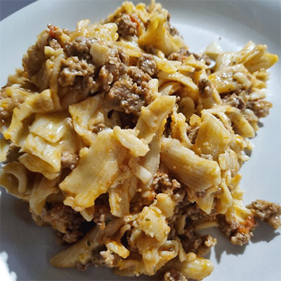 500 g mince beef 1tsp Basil 3 cloves Garlic 1 Onion 2 tbsp Parsley 1 can Tomatoes 2 tbsp Tomato paste 2 cups macaroni 1tsp ltalian seasoning 1 tsp Salt and pepper 1tsp Sugar 2 tbsp Butter 2 cups grated cheese Heat butter in pan and brown the mince. Then add in minced garlic and chopped onion and cook for e minutes. Add in the herbs, salt and pepper and tomato paste and give a good stir. Mix in the canned tomatoes and let simmer. Meanwh...