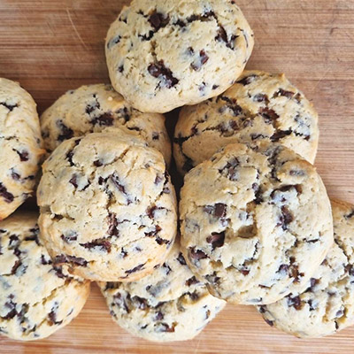 2 Eggs, 3 cups flour 1/2 tsp Baking powder 1 tsp Baking soda 1 cup Brown sugar 1/2 cup sugar 1/2 tsp Salt 2 cups chocolate chips 2 tsp Vanilla 1 cup Butter Preheat oven to 180°C Line a baking tray with parchment paper. Cream together butter and sugars. Add eggs and vanilla. Whisk together flour, baking soda, baking powder, and salt. Combine wet and dry ingredients, then add in chocolate chips. Scoop dough into balls, place on baking...