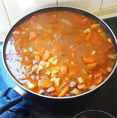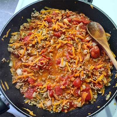 Cover this dish with mashed potatoes and bread crumbs and bake in the oveen until golden brown and you have Shepherd's Pie.