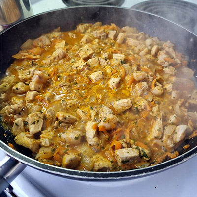This is one of our household staple recipes. This recipe is full of flavor and aroma, yet simple to put it all together. It is ideal for weeknights dinner. The spices are subtle, suitable for children and adults who don't like spicy food. Ingredients: 2 chicken breasts (chopped) 1 tsp Black pepper 1 tsp paprika 1 tsp curry 1 tsp turmeric 2 cups rice 200 ml chicken broth 1 can of 400ml coconut milk or coconut cream 1 onion 1 carrot 3 Celery stalks 3...