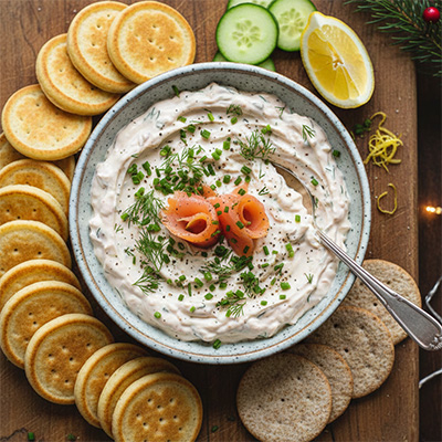 Ingredients - 200 g smoked salmon, finely chopped - 250 g cream cheese (softened) - 2 tbsp sour cream or crème fraîche - 1 tbsp lemon juice + zest of half a lemon - 1 tbsp finely chopped dill (plus extra for garnish) - 1 tbsp finely chopped chives - 1 tsp capers, minced (optional, for briny punch) - Black pepper, to taste - Mini blinis, crackers, or cucumber slices for dipping Method - Base: In a bowl, beat cream cheese until smooth. Stir in sour cream/crème...