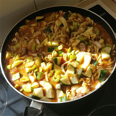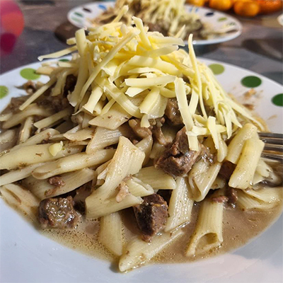 2 lbs Beef cut up 4 tsl crush Garlic Parsley chopped 2 cups Beef broth 1tbsp Tomato paste 2 cups Pasta Black pepper 1 tsp ltalian seasoning 1/2 tsp Paprika Salt 1 cup cheese, grated Add the beef chunks to the slow cooker. Sprinkle with garlic, parsley, Italian seasoning, paprika, salt and pepper. Stir to coat the beef evenly. Pour in the beef broth and stir in the tomato paste. Cover and cook in low for 6-8 hours. At the end boil the...