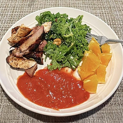 I basically do the same recipe (out of my head vs following any specific recipe), except I def omit the tomatoes (I'm anaphylactic to them), and nearly always add 'to the bowl upon serving' something like diced pineapples or lychee.