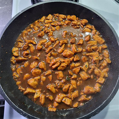Season chicken pieces with salt, turmeric, chili powder, cumin, coriander, garlic, ginger, garam masala, lemon juice, a little yogurt, and oil. Mix well and marinate for at least an hour. Place the chicken in the airfryer at 375°F (190°C) for about 20 minutes, flipping halfway, then increase to 400°F (200°C) for a few minutes to make it crispy. Serve hot with ketchup.